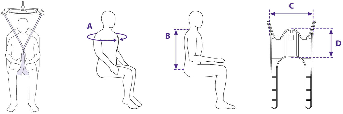 • Geteilte Beinschlinge mit vollständiger Körper- und Kopfstütze