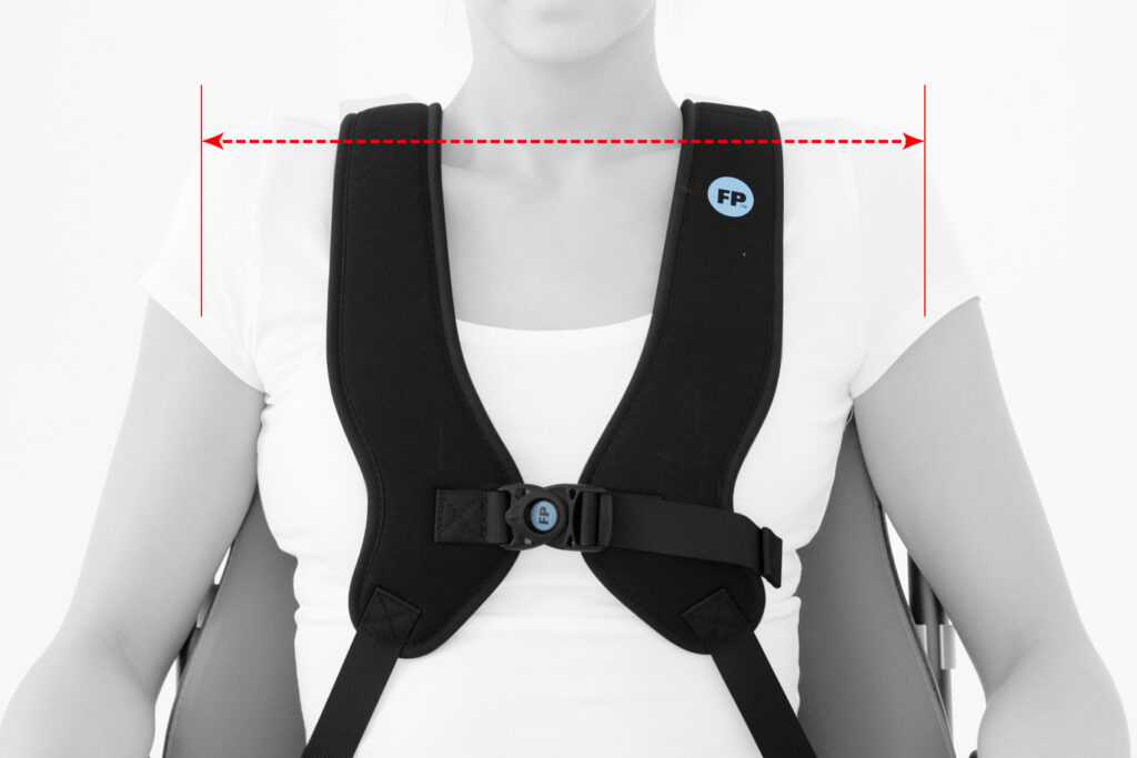 Der Brustschultergurt wurde so konzipiert, dass er dem Nutzer die richtige Balance zwischen Bewegungsfreiheit und vollständiger Stabilisierung bietet. Das elastische Material garantiert eine wesentlich bessere Druckverteilung (Vertikaldynamik) und einen gewissen Bewegungsspielraum der Brust (horizontale Dynamik). Eine solche Lösung wird insbesondere für spastische Menschen empfohlen. Die Kontaktfläche der Weste mit dem Körper ist größer als bei anderen Standardlösungen, was eine bessere Stabilisierung gewährleistet.